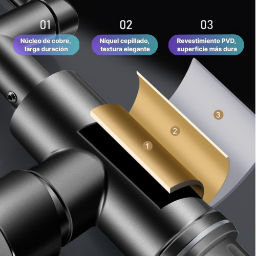 ✨ Tres juntas con rotación de 360° para llevar el agua a cada rincón del fregadero